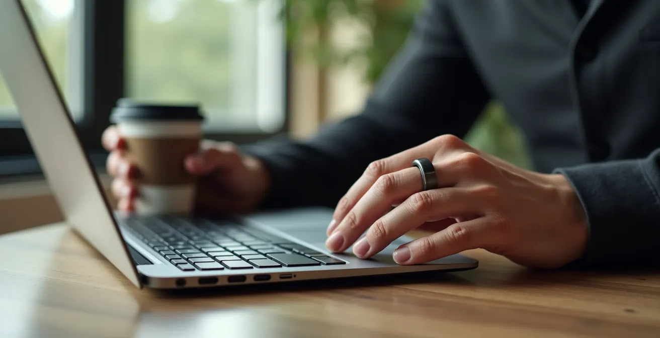 Cette légèreté a un impact direct sur le confort au quotidien. Que vous tapiez sur un clavier, que vous teniez un outil ou que vous serriez une main, l’absence de masse rend le port de la bague non intrusif. Pour l’homme qui redoute cette présence constante, c’est la révélation. L’objectif n’est pas de « s’habituer » au poids, c’est de choisir un matériau dont le poids est si négligeable qu’il n’y a aucune phase d’adaptation. Vous la mettez, et le lendemain, vous avez déjà oublié qu’elle est là.
